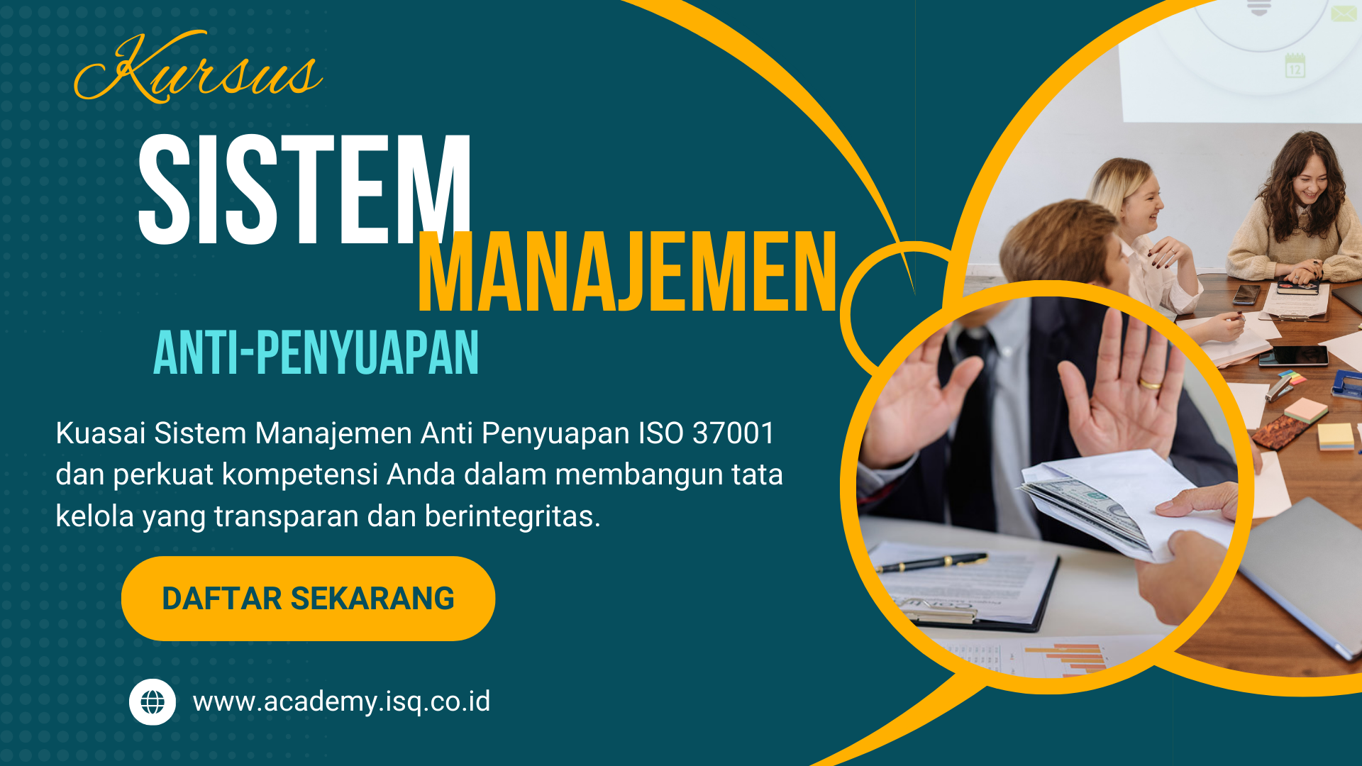 Pelatihan ISO 37001:2025 dirancang untuk memberikan pemahaman komprehensif mengenai Sistem Manajemen Anti Penyuapan (SMAP) sesuai standar ISO 37001. Peserta akan mempelajari prinsip, persyaratan, serta praktik penerapan sistem manajemen anti penyuapan yang efektif dalam organisasi guna mencegah, mendeteksi, dan menangani risiko penyuapan.